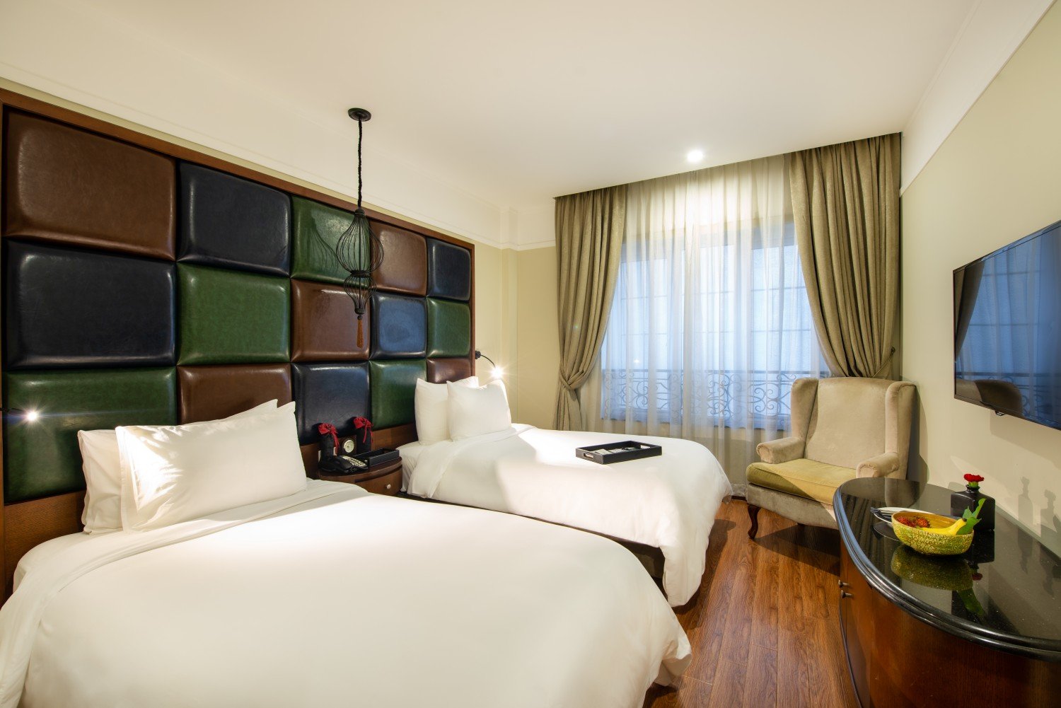 Full Family Room. Includes 1 Queen bed and 2 Single beds. Features a private bathroom and extra storage.